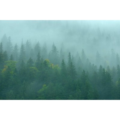 Transformați orice încăpere într-un sanctuar al naturii cu un fototapet panoramic dintr-o bucată, ce capturează esența liniștitoare și revitalizantă a peisajelor montane. Imaginea vie, în nuanțe de verde profund, împodobită cu brazi și munti învăluiți în ceață, oferă un efect 3D imersiv, creând o ex..